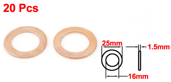 20 Pcs Copper Crush Washer Flat Seal Ring Gasket 16mmx25mmx1.5mm
