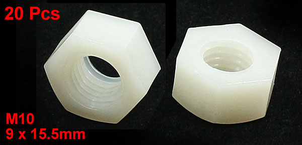 Product Name Hexagonal Threaded Spacer Thread Size M10 Total Size 9 x 15.5mm / 0.35" x 0.6" (H*D) Material Nylon Color White Net Weight 44g Package Content 20 Pcs x Hexagonal Threaded Spacer - Reviews