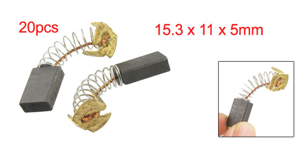 Product Name Motor Carbon Brush Fitness Generic Electric Motor Carbon Brush Size (Approx) 15.3 x 11 x 5mm/39/64" x 7/16" x 1/5"(L*W*H) Total Length(Approx) 41mm/ 1.6" Net Weight 51g Package Content 20 Pcs x Motor Carbon Brush - Reviews