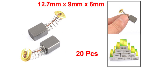 Product Name Motor Carbon Brush Material Carbon, Metal Color As Picture Show Carbon Brush Size (Approx.) 12.7 x 9 x 6mm/ 1/2" x 9/25" x 15/64" (L*W*T) Total Length(Approx) 30mm/ 1.31" (When Spring Stretching) Net Weight 33g Package Content 20 x Motor Carbon Brush - Reviews