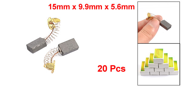Product Name Motor Carbon Brush Material Carbon, Metal Color As Picture Show Carbon Brush Size (Approx.) 15 x 9.9 x 5.6mm/ 19/32" x 25/64" x 7/32" (L*W*T) Total Length(Approx) 36mm/ 1.4" (When Spring Stretching) Net Weight 48g Package Content 20 x Motor Carbon Brush - Reviews