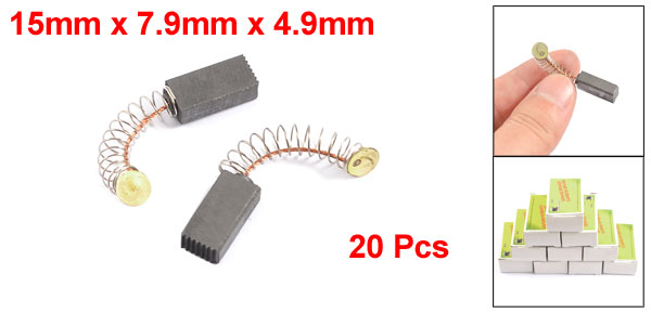 Details20 Pcs Electric Motor Carbon Brushes 19/32" x 5/16" x 1/5"  Product Name Motor Carbon Brush Material Carbon, Metal Color As Picture Show Carbon Brush Size (Approx.) 15 x 7.9 x 4.9mm/ 19/32" x 5/16" x 1/5"(L*W*T) Total Length(Approx) 33mm/ 1.3" (When Spring Stretching) Net Weight 28g Package Content 20 x Motor Carbon Brush