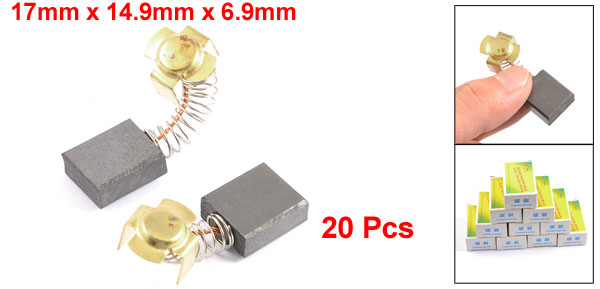 Product Name Motor Carbon Brush Material Carbon, Metal Color As Picture Show Carbon Brush Size (Approx.) 17 x 14.9 x 6.9mm/ 21/32" x 19/32" x 7/25" (L*W*T) Total Length(Approx) 40mm/ 1.57" (When Spring Stretching) Net Weight 97g Package Content 20 x Motor Carbon Brush - Reviews