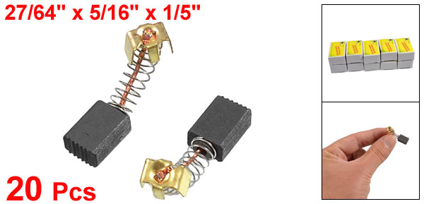 Product Name Carbon Brush Model CB64 Carbon Brush Size 11 x 8 x 5mm/27/64" x 5/16" x 1/5" (L*W*T) Total Length(Approx) 28mm/1.1"(When Spring Stretching) Material Carbon & Metal Color Black & Gold Tone Net Weight 23g Package Content 20 x Carbon Brush - Reviews