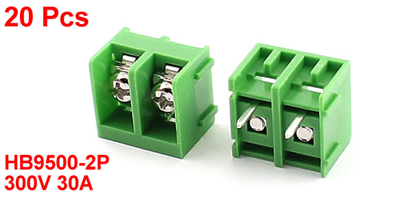 20 Pcs HB9500-2P 2 Position 2Pin 9.5mm Screw Terminal Barrier Strips 300V 30A
