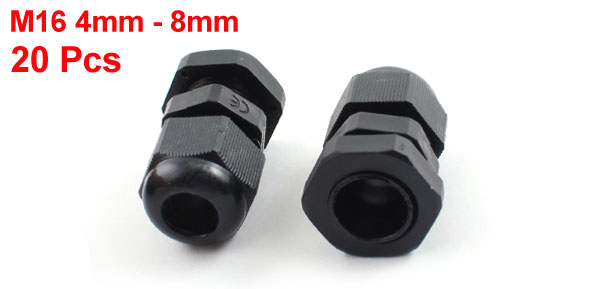 Product Name Cable Gland Model M16 Thread Size M16x1.5 Cable Range 4-8mm Thread Length 7mm / 0.27" Total Size 34 x 24mm / 1.3" x 0.94" (L*Max.D) Main Material Plastic Color Black Weight 131g Package Content 20Pcs x Cable Glands - Reviews