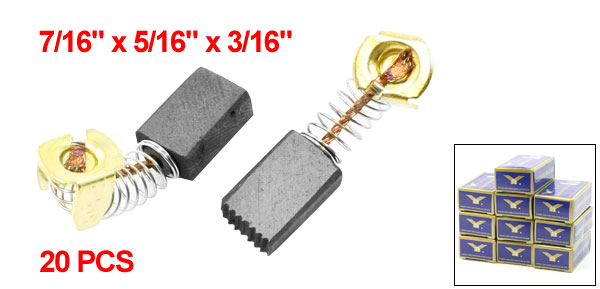 Product Name Carbon Brush Carbon Brush Size (Approx) 11 x 7.9 x 4.9mm / 7/16" x 5/16" x 3/16"(L*W*T) Wire Length 20mm / 0.8" Material Carbon, Copper Main Color Dark Gray Net Weight 72g Package Content 20 Pcs x Carbon Brush  - Reviews