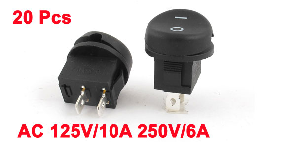 20 Pcs ON-OFF Snap Round Rocker Switch Black AC 125V/10A 250V/6A