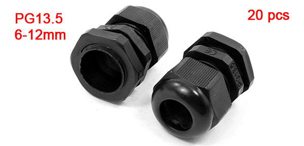 20 Pcs PG13.5 Plastic Cable Gland Fastener Black for 6mm to 12mm Dia Line