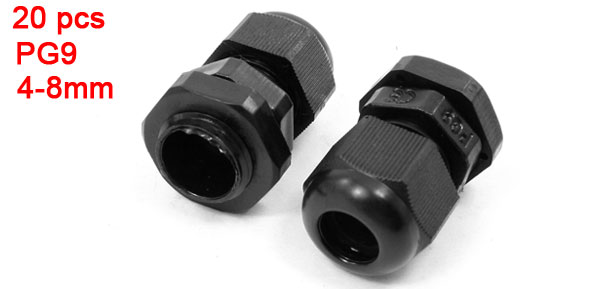 20 Pcs PG9 Black Plastic 4mm to 8mm Dia Cable Glands Connectors