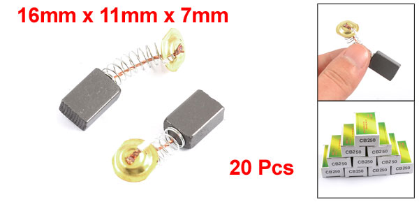 Product Name Carbon Brush Carbon Brush Size 16 x 11 x 7mm / 21/32" x 27/64" x 17/64" (L*W*H) Total Length 40mm / 1.57'' (When Spring Stretching) Material Carbon,Metal Color As Picture Show Net Weight 66g Package Content 20 Pieces of Carbon Brush - Reviews