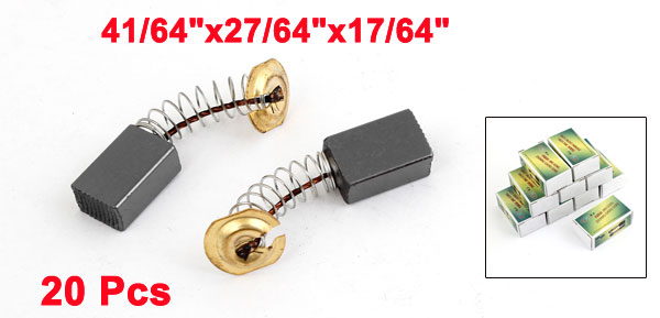 Product Name Carbon Brush Material Carbon, Metal Color Black, Bronze Tone Carbon Brush Size 16.6 x 11 x 6.9mm/41/64" x 27/64" x 17/64"(L*W*T) Total Length(Including Cable and Pin) 42mm/ 1.65" Total Weight 114g Package Content 20 x Carbon Brushes - Reviews