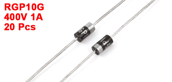 Product Name Rectifier Diodes Model RGP10G Package Type DO-41 Maximum Repetitive Peak Reverse Voltage 400V Maximum Average Forward Current 1A Body Size 5 x 2mm / 0.2" x 0.08"(L*D) Length 60mm / 2.4" Color Black Weight 9g Package Content 20 x Rectifier Diodes - Reviews