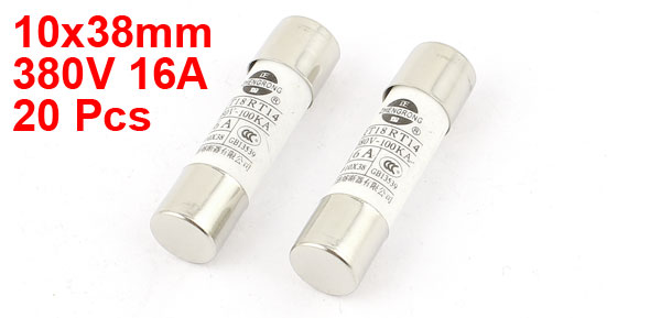 20 Pcs RO15 RT18 RT14 Ceramic Cylindrical Tube Fuse 16A 380V 10x38mm