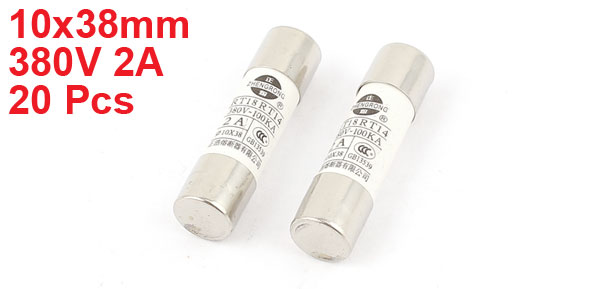 20 Pcs RO15 RT18 RT14 Ceramic Cylindrical Tube Fuse 2A 380V 10x38mm