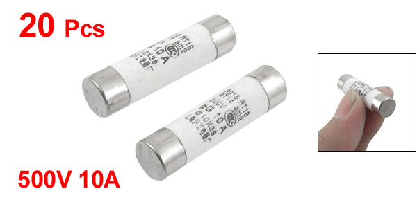 Product Name Cylinder Caps Fuse Model R015 RT19 RT14 RT18 gG Type Fast Blow Material Aluminum, Cermic, Electronic Parts Rated Voltage 500V Rated Current 10A Main Color White, Silver Tone Size 10 x 38mm/ 0.39" x 1.5" (D*L) Weight 111g Package Content 20 x Cylinder Caps Fuse - Reviews