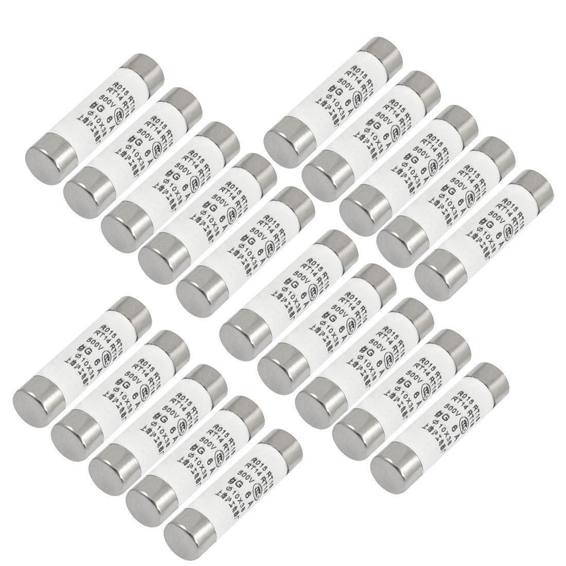 Product Name Cylinder Caps Fuse Type R015 RT19 RT14 RT18 gG Type Fast Blow Material Aluminum, Cermic, Electronic Parts Rated Voltage 500V Rated Current 6A Main Color White, Silver Tone Size 10 x 38mm/ 0.39" x 1.5" (D*L) Weight 110g Package Content 20 x Cylinder Caps Fuse - Reviews