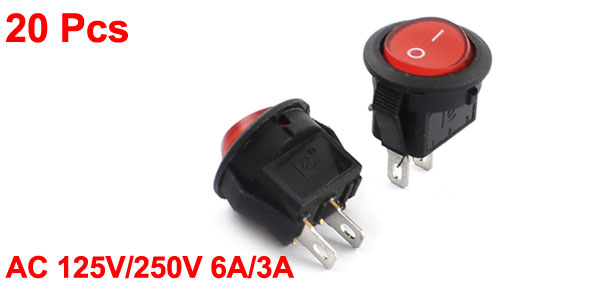 Mount Dia 14mm/0.55" Pins 2 Main Color Red, Black Product Name Rocker Switch Rated AC 125V/250V 6A/3A Net Weight 36g Country of Manufacture CHINA Package Content 20Pcs x Rocker Switch Material Plastic, Metal Contact Type SPST Total Size 17 x 16mm/0.67" x 0.63"(D*H) Positions 2 - Reviews