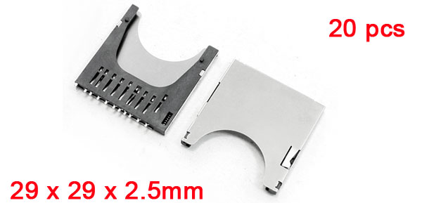Product Name SD Card Socket Fit for SD Memory Card Insertion & Removal Method Push In, Push Out Material Stainless Steel, Plastic Color Silver Tone Size 29 x 29 x 2.5mm/ 1.1" x 1.1" x 0.09"(L*W*H) Net Weight 41g Package Content 20 x Memory Card Sockets - Reviews
