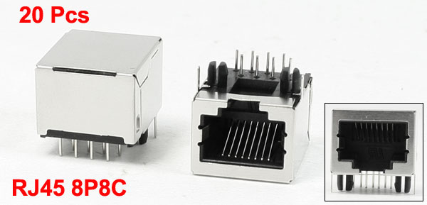 Product Name RJ45 Jack Feature RJ45 8P8C Material Plastic, Metal Color Black, Silver Tone Total Pin Number 8 Pin Type Round Pin,PCB Mounting Pin Angle & Location Right Angle Pins in the Rear Each Size (Approx.) 18 x 15.5 x 12mm / 0.7" x 0.6" x 0.5" (L*W*H) Net Weight 93g Package Content 20 x RJ45 PCB Jack - Reviews