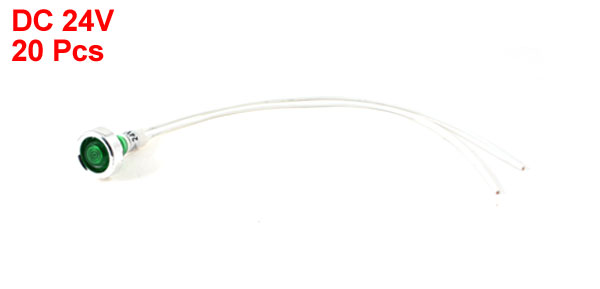 20 Pcs White Cable Green Indicator Pilot Light Lamp DC 24V