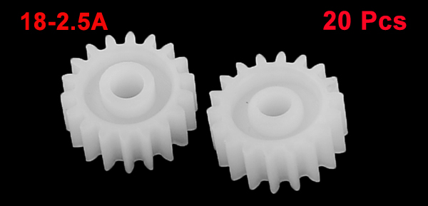 Product Name Plastic Gear Model 18-2.5A Total Size 10 x 4mm/ 0.4" x 0.16" Material Plastic Color White Net Weight 6g Package Content 20 x Plastic Gear - Reviews