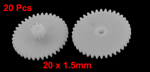 Product Name Plastic Gear Model 3808-2B Total Size 20 x 1.5mm/ 0.8" x 0.06" Material Plastic Color White Net Weight 14g Package Content 20 x Plastic Gear - Reviews