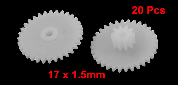 Product Name Plastic Gear Model 3210-2B Total Size 17 x 1.5mm/ 1.14" x 0.06" Material Plastic Color White Net Weight 10g Package Content 20 x Plastic Gear - Reviews