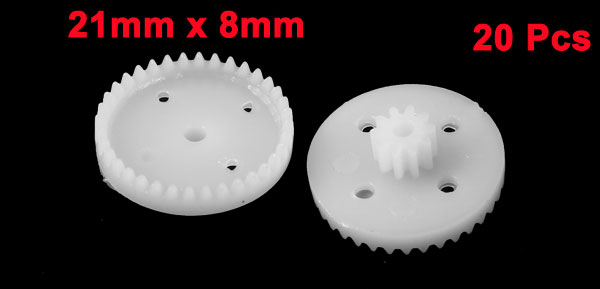 Product Name Plastic Gear Total Size 21 x 8mm/ 0.8" x 0.32" Material Plastic Color White Net Weight 15g Package Content 20 x Plastic Gear - Reviews