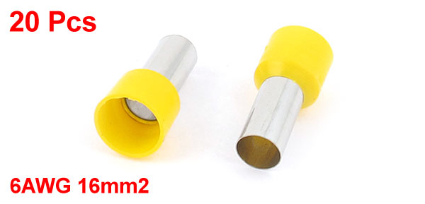 20 Pcs Wire Crimp Connector Terminal Insulated Ferrule Yellow E16-12 6AWG 16mm2
