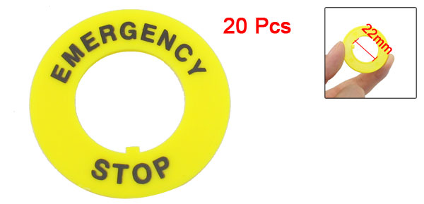 Product Name Emergency Stop Ring Material Plastic Color Yellow Outer Diameter 40mm / 1.6" Inner Diameter 22mm / 0.8" Weight 34g Package Content 20 x Emergency Stop Ring - Reviews