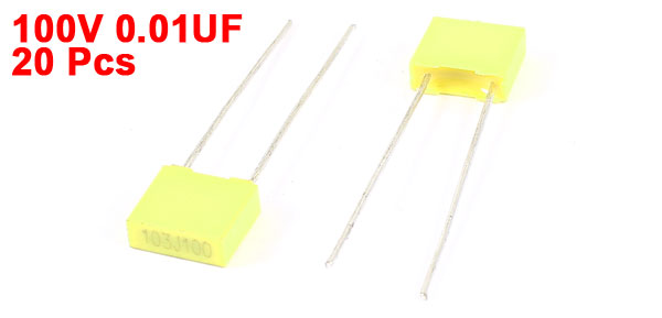 20 Pieces 100V 0.01uF 10% Radial Lead Box Type Film Correction Capacitors Yellow