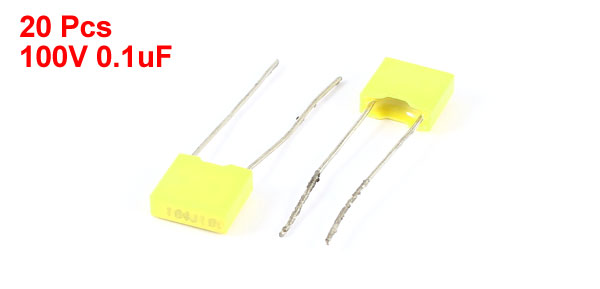 20 Pieces 100V 0.1uF 100NF 10% Radial Lead Box Type Correction Capacitors Yellow