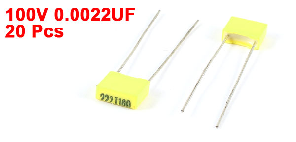 20 Pieces 100V 2.2NF Metal Radial Lead Box Type Film Correction Capacitor Yellow