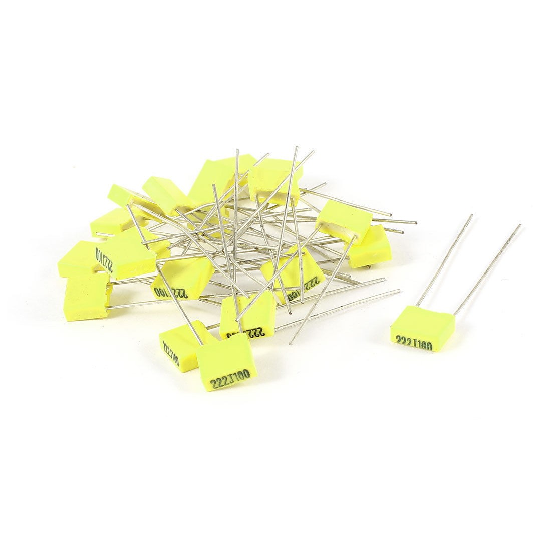 Product Name Correction Capacitor Model No. 222J100 Type Radial Lead Withstand Voltage 100V Capacitance 0.0022UF/2.2NF Capacitance Tolerance ±5% Lead Spacing 5mm Lead Size 29 x 0.5mm / 1.1" x 0.02" (L*D) Body Size 7 x 6.5 x 2.5mm /0.28" x 0.26" x 0.1" (L*W*T) Net Weight 6g Color Yellow Package Content 20 Pcs ±2% x Correction Capacitors - Reviews