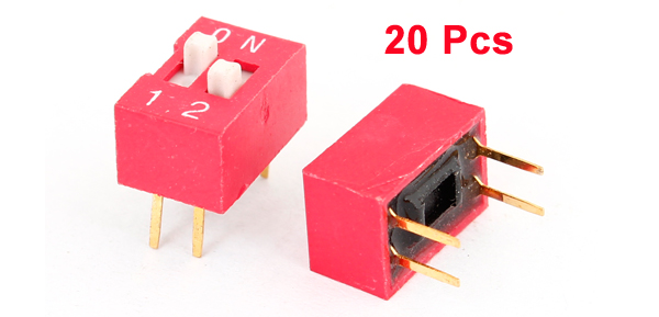 20 Pieces 2.54mm 0.1" Pitch 2 Position 4 Pins Slide Type DIP Switches Red