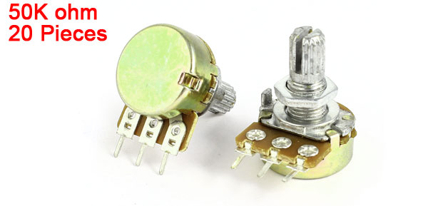 Product Name Potentiometer Resistance Value 50K ohm Adjustment Type Top Adjustment Type Single Linear (Type B) Features Knurled Shaft Shaft Diameter 6mm / 0.23" Shaft Length 13mm / 0.55" Mounting Hole 7mm / 0.28" Base Height 8mm / 0.31" Base Diameter 16mm / 0.62" Total Height 24mm/0.94" Material Metal w Electronic Parts Color As Picture Show Weight 130g Package 20 x Potentiometers - Reviews