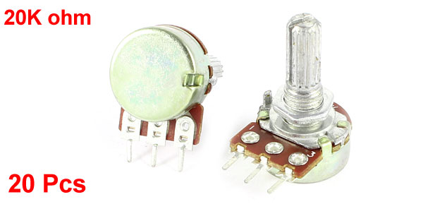 Product Name Potentiometer Resistance Value 20K ohm Power AC 220V 6A Adjustment Type Top Adjustment Type Single Linear(Type B) Features Knurled Shaft Shaft Diameter 6mm / 0.2" Shaft Length 13mm / 0.55" Mounting Thread Diameter 7mm / 0.28" Base Size 16 x 8.5mm / 0.63" x 0.33"(D*H) Total Height 29mm/1.1" Material Metal, Electronic Parts,Carbon Film Net Weight 142g Package 20 x Potentiometer - Reviews