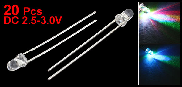 20 Pieces Clear 3mm Straw Hat Colorful LED Lamp Slow Flash Light Emitting Diodes