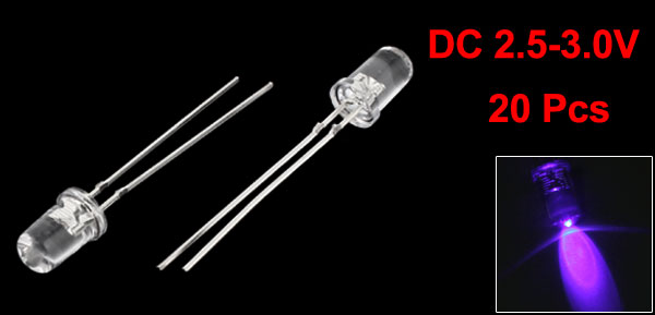 20 Pieces Clear 5mm Straw Hat Purple LED Lamp Light Emitting Diodes DC 2.5V-3.0V