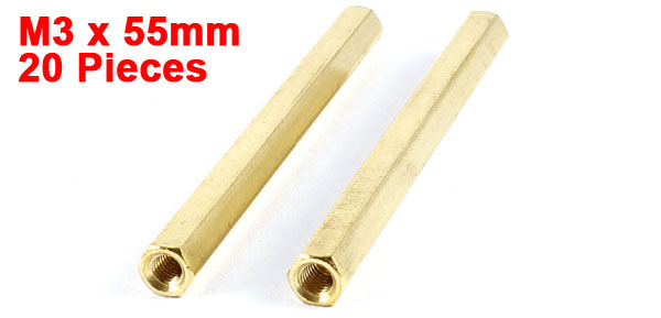 20 Pieces M3 Female Threaded PCB Brass Standoff Spacer 55mm High Gold Tone M3x55
