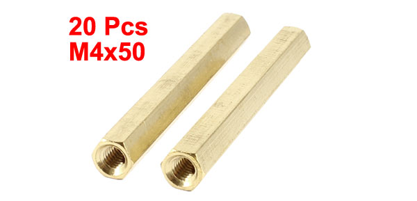 20 Pieces M4 Female Threaded PCB Brass Standoff Spacer 50mm High Gold Tone M4x50