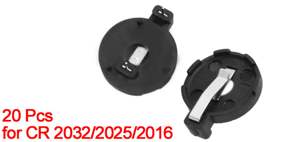 Product Name Button Battery Holder Fit Battery Model for CR 2032/2025/2016 (Not Included Here) Material Plastic, Metal Body Size 28 x 23 x 1.2mm/ 1.1" x 0.9" x 0.47"(L*D*T) Inner Diameter 20mm / 0.79" Pin Quantity 2(1 for "-", 1 for "+") Distance Between Pins 20mm / 0.79" Color Black Net Weight 40g Package Content 20 Pcs x Button Battery Holder - Reviews