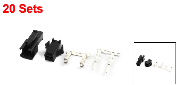 Details20 Sets 2.5mm 2P Black JST SM Plug Housing w Male Female Terminal Connector  Main Color Black, Silver Tone Net Weight 28g Country of Manufacture CHINA Pin Pitch 2.5mm Package Content 20 Sets JST-SM Plug Housing Connector Wire Female Housing Size 12 x 5 x 5mm/0.47" x 0.2" x 0.2"(L*W*T) Material Plastic , Metal Pin Type 2 Pin Male Housing Size 19 x 8 x 7mm/0.75" x 0.31" x 0.28"(L*W*T)