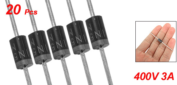 Product Name Rectifier Diode Model 1N5404 Current 3A Max Peak Reverse Voltage 400V Lead Diameter 1mm Body Dimension 5 x 9mm/ 0.2" x 0.35" (D*L) Total Length (Each) 62mm/ 2.4" Color As Picture Show Weight 20g Package Content 20 x Rectifier Diode - Reviews