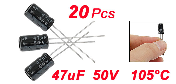 20 x 47uF 50V 105C Radial Electrolytic Capacitor 6x11mm