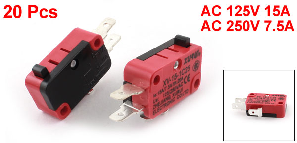 AC 250V 7.5AIth 20A Contact Type 1NO+1NC Actuator Momentary Push Button Terminal 3 Pin Overall Size(Approx.) 28 x 16 x 11mm / 1.1" x 0.63" x 0.43"(L*W*T) Color Red, Black Material Plastic, Metal Weight 125g Package Content 20 Pcs x Micro Switch - Reviews