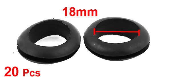20 x Black Rubber 18mm Open Hole Ring Dual Side Cable Wiring Grommet