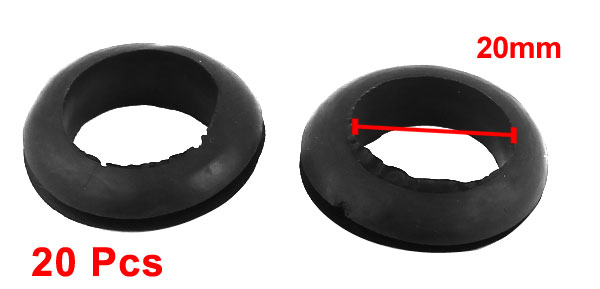 20 x Black Rubber 20mm Open Hole Ring Dual Side Cable Wiring Grommet