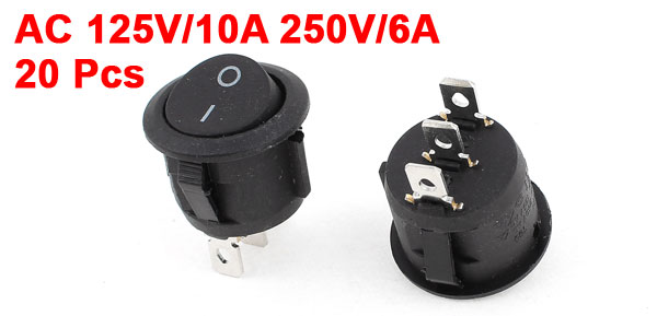 20 x KCD1 Black Round 3Pin SPDT ON/OFF Rocker Power Switch AC 125V/10A 250V/6A